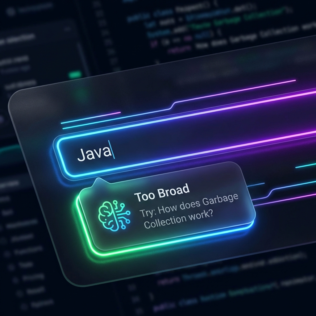 If you type "Java" into our Nano Learning engine, the AI stops you. It demands specificity. "Too broad. Try: 'How does Garbage Collection work?'"